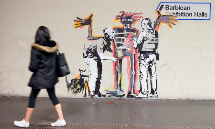 Two new artworks appeared at the Barbican Centre in central London in September 2017 inspired by an upcoming Jean-Michel Basquiat exhibition.